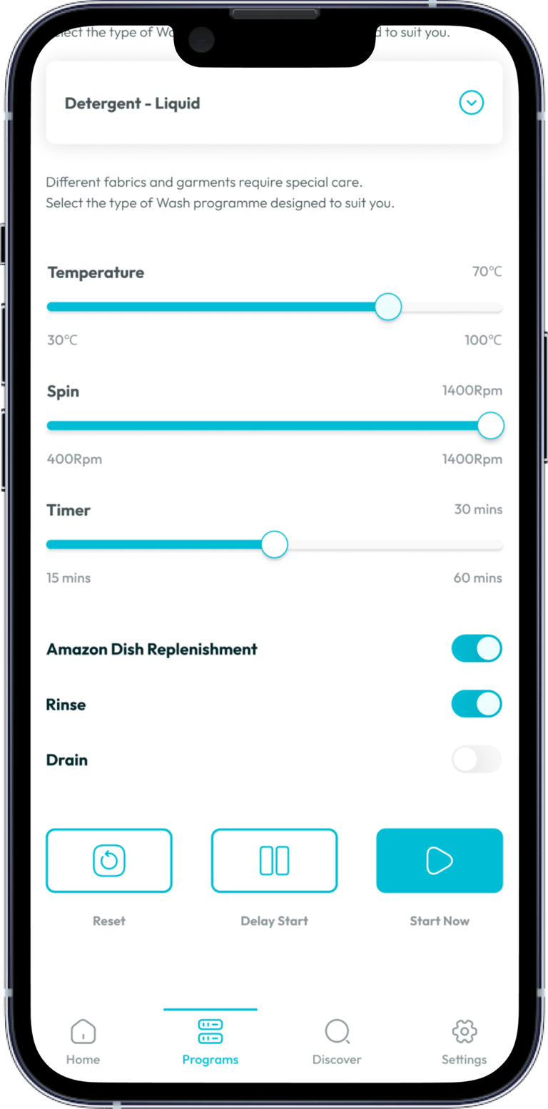 With the advent and advancement in technology and the availability of smart home appliances, we built a case study to address the challenge faced by users by designing a mobile app that allows users to remotely control the complete washing settings of their smart washing machine from anywhere. Our design decisions were made to solve key problems in the following areas: